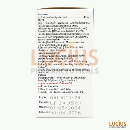 卢修斯制药有限公司生产的乌帕替尼药品规格为15mg*30片,是一种用于治疗多种免疫性疾病的口服JAK抑制剂。患者在使用前应充分了解药品信息,乌帕替尼为处方药,须凭处方在药师指导下购买和使用。使用前需详细了解药品说明书,注意可能的药物相互作用和副作用。治疗期间,患者应定期进行血液检查,监测药物对血细胞生成的影响。